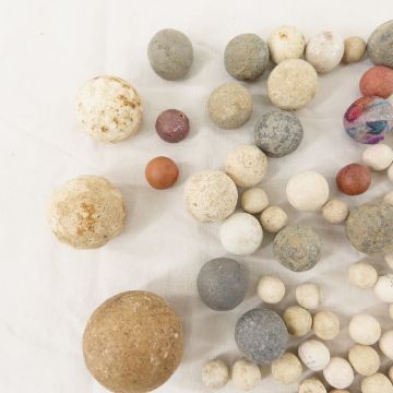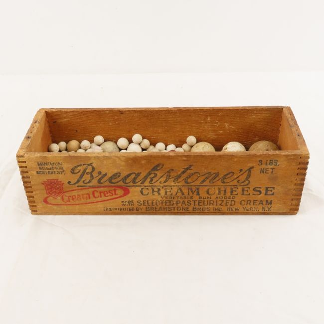 Collection of vintage China marbles in cheese box - Lot Size 5x5x12" 2lbPhotos are part of description. Please ask questions and read terms & conditions before bidding.