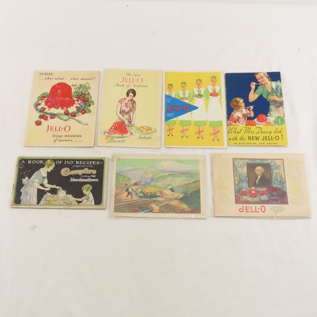 Borden's Elsie Cookbooks, Jell-O & Other Ephemera - Elsie the Borden's cow World's Fair cook book, cookbook in mailing envelope, and 1952 recipe book. 12 Jell-o items. Country Maid store display, 1963 Spiegel catalog. Others include: White House cereal, Snow,VandeKamp's, Calumet, Campfire, Hershey's, Kool-Aid, Royal, Angelus, Knox, and others. Lot size: 14 x 11 x 5", 8 lbsPhotos are part of description. Please ask questions and read terms & conditions before bidding.