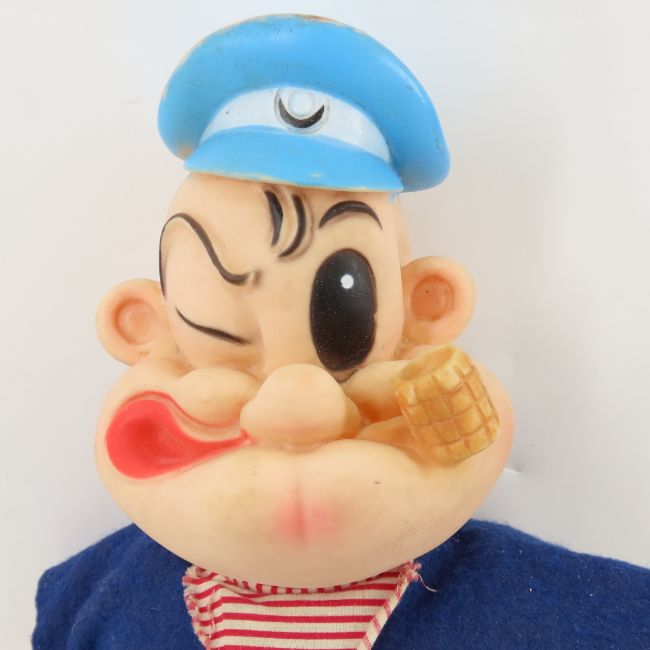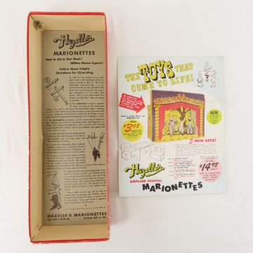 Vintage Marionette, Plush & Hand Puppets - 1) Hazelle's Popular marionette 812- Sally in original box, with Tenite head, includes sales brochure, 2) 17" Popeye- King Features Syndicate- Gund, fabric & vinyl, 3) 1930 Horsman fabric Little Lulu, 4) Dutch Boypaints fabric & vinyl hand puppet, 5) plastic & fabric pig and owl hand puppets, 6) Vintage Walt Disney Distributing Dumbo plush - scarf is ripped and hat has hole. Lot size: 18 x 12x 10", 5 lbsPhotos are part of description. Please ask questions and read terms & conditions before bidding.