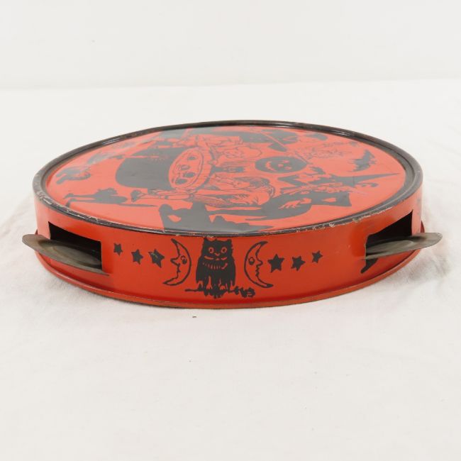 2 J Chein Tin Halloween Tambourine Noisemakers - 7" diameter, Lot size: 9 x 7 x 4", 1 lbPhotos are part of description. Please ask questions and read terms & conditions before bidding.