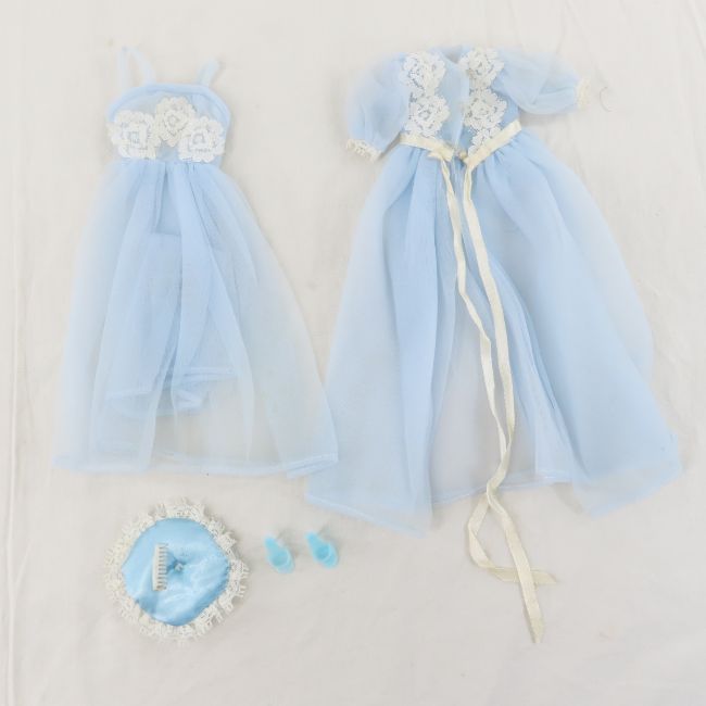 8 Complete Vintage Barbie Outfits - 1) complete #977 Silken Flame 1960-64, 2) Complete #984 American Airline Stewardess 1961-1964, 3) complete #949 Raincoat 1963 4) complete Leisure Hours 1964-1965 -0872 Cinderella; broom, tan princess phone, 976Sweater Girl; wooden bowel with three balls of yarn and two needles & 979 Friday Nite Date; black tray, two glasses with cotton foam and two straws, a tan plastic TV with metal antenna. 5) complete 1636 SleepingPretty 1965 Light blue nylon sheer gown with lace trim on bodice, matching robe, light blue open toe heels, with matching blue pompons, blue satin pillow with a pearl in the center and lace trim, white comb.6) complete Pak Scoop Neck Playsuit 1962-1963 black and white floral print with red belt 7) Barbie Pak Sheath Dress with Gold Buttons 1962-1963 olive green mini-dot cotton printwith four gold button accents two patch pockets with a flap, snaps in back closure. 8) complete 1483 Little Bow Pink 1969-1970- dress, lace stockings, pilgrim shoes, hanger. Lot size: 9x7x5", .8 lbsPhotos are part of description. Please ask questions and read terms & conditions before bidding.