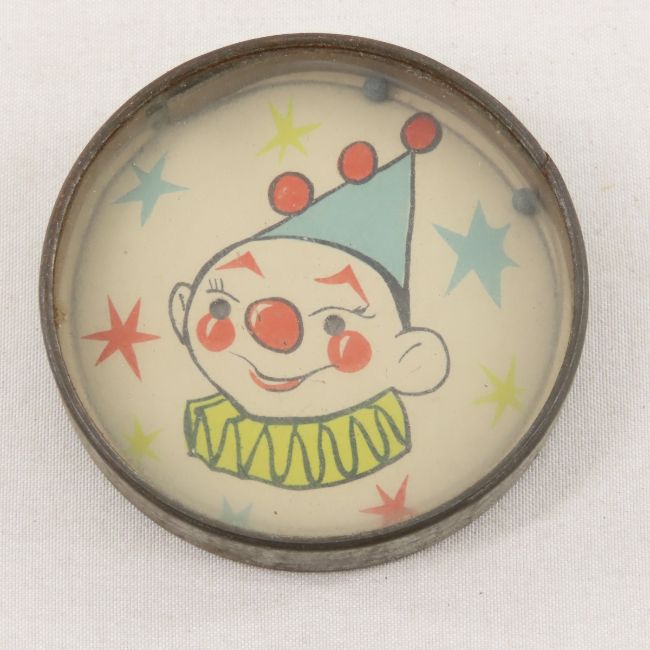 5 Vintage Mirror Back Dexterity Puzzles - Circus - Each approx 2 1/4" - 2 3/4" all have mirror back. DBGM Western Germany tiger jumping through hoop. DGBM Foreign Juggling Jester 2 1/4", Probably DBGM - only visible marking is FOREIGN 4 bead seal puzzle, missing eyesclown puzzle, 5 mini bead creepy clown puzzle, unmarked, staining on mirror. Lot Size 3x3x3", 1 lbPhotos are part of description. Please ask questions and read terms & conditions before bidding.