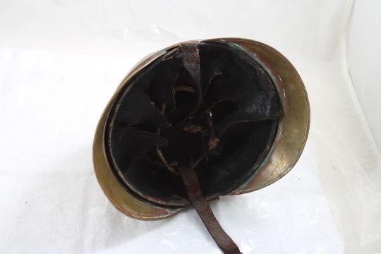 Antique German Fireman's Brass Helmet - Has some damage and pictured. Measures 10" x 7.5". As pictured.Photos are part of description. Please ask questions and read terms & conditions before bidding.