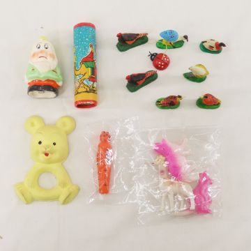 Vintage plastic toys, Rail Walkers, Animals & more - Cake toppers, compass, and more. Lot size: 11 x 10 x 10", 5.9 lbsPhotos are part of description. Please ask questions and read terms & conditions before bidding.
