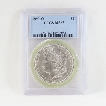 1899 O Morgan Silver Dollar PCGS MS62 - Lot Size 3x2x1" 1 lb Photos are part of description, Live Auctioneers only displays the 1st 20 photos per lot. Please ask questions and read terms & conditions before bidding.