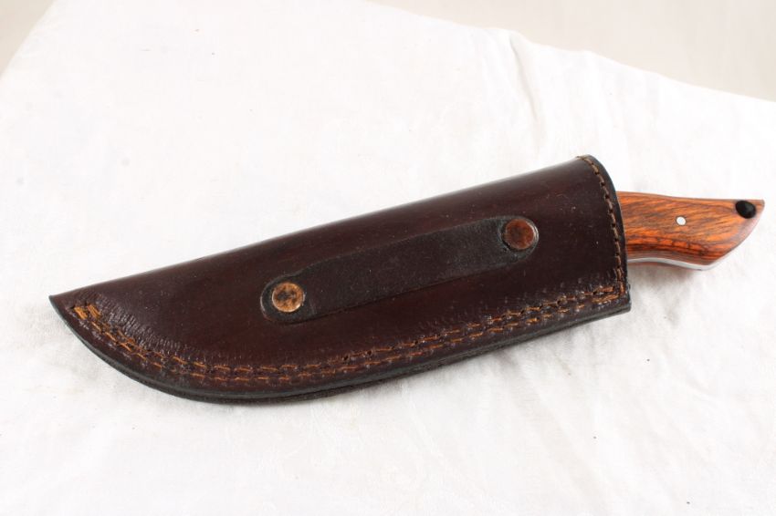 Custom Made Fixed Blade Knife in Sheath - 8 Oz. Lot Size d9" x 3" x 2". Photos are part of description (Live Auctioneers only shows up to 20). Please ask questions and read terms & conditions before bidding.