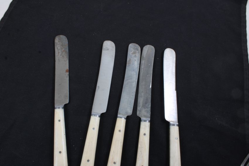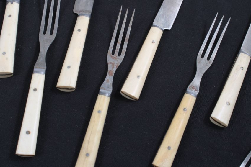 Civil War Era Bone Handle- 5 Knives & 6 Forks - 1 1/2 Lbs. Lot Size 10" x 3" x 3". Photos are part of description (Live Auctioneers only shows up to 20). Please ask questions and read terms & conditions before bidding.