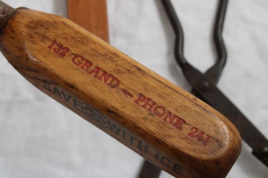 Coke and Other Advertising Items - Ice Tongs Ice Pick, Floating Knife, Fish Knife, Stanley Folding Rule. 2 Lbs. Lot Size: 10" x 8" x 8". Photos are part of description (Live Auctioneers only shows up to 20). Please ask questions and read terms & conditions before bidding.