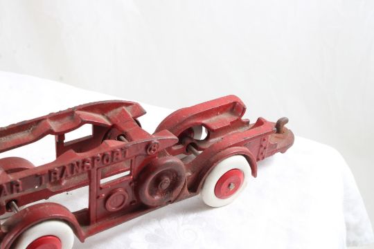 Hubley Nucar Transport Cast Iron Tractor Truck - 1 Lb. 11 Oz. Lot Size 10 1/2" x 3" x 3". Photos are part of description (Live Auctioneers only shows up to 20). Please ask questions and read terms & conditions before bidding.