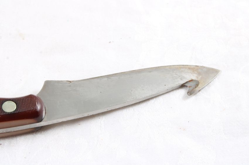 Schrade #158OT Old Timer Gut Hook F/B Knife - in Sheath. Lot Size 8 1/2" x 3" x 2". 6 Oz. Photos are part of description (Live Auctioneers only shows up to 20). Please ask questions and read terms & conditions before bidding.