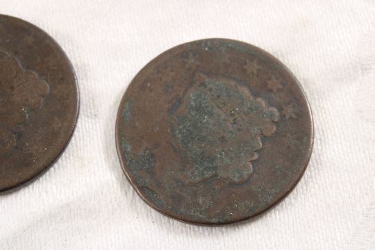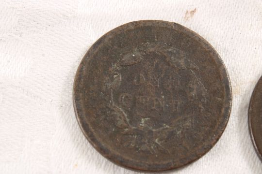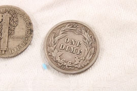 3 Large Cents, 2 Silver Dimes - 1920 Mercury & 1914 Barber Dime. Large Cents no dates. 3 Oz. Lot Size 1.25" Diameter. Photos are part of description (Live Auctioneers only shows up to 20). Please ask questions and read terms & conditions before bidding.