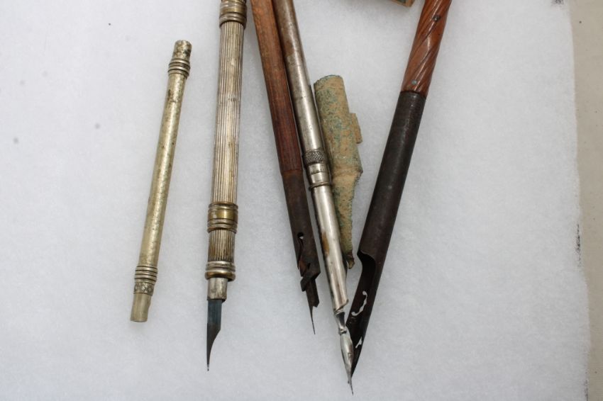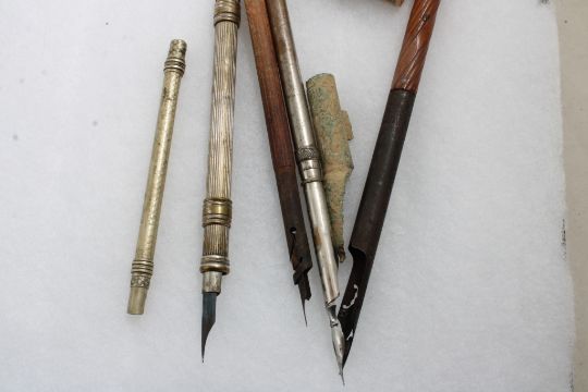 Civil War Era Pens, Auto Bike Mini Flag Set in Box - Civil War Era & Other Antique Pens in Riker Case and Auto/Bike Mini Flag Set in Box Annin. 2 Lbs. Lot Size 12" x 9" x 5". Photos are part of description (Live Auctioneers only shows up to 20). Please ask questions and read terms & conditions before bidding.