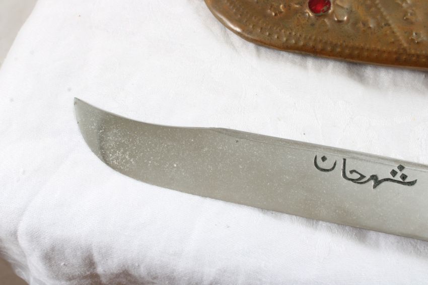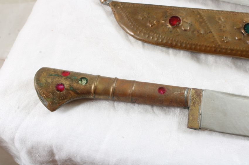 2 Tourist Souvenir Fixed Blade Knives - in Metal Sheaths. Brazil & Arabic. Lot Size is 12" x 3" x 2". 1 Lb. Photos are part of description (Live Auctioneers only shows up to 20). Please ask questions and read terms & conditions before bidding.