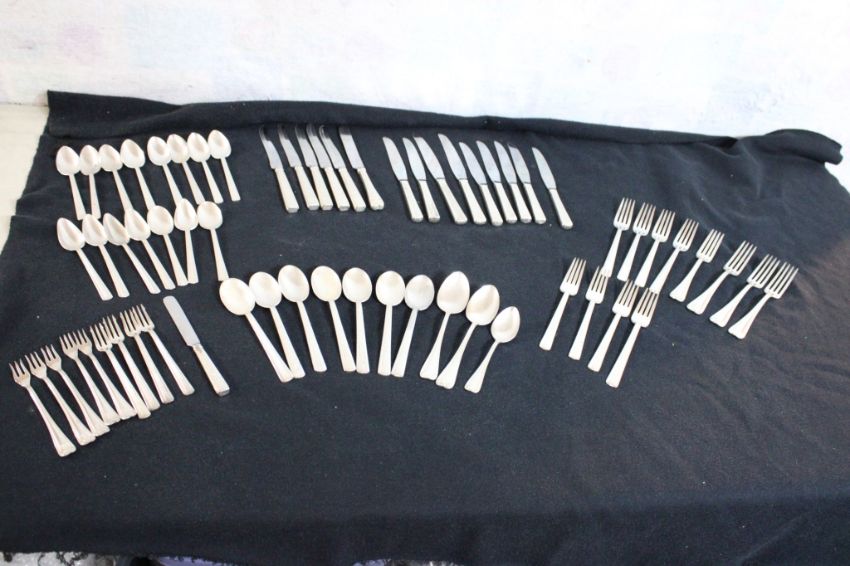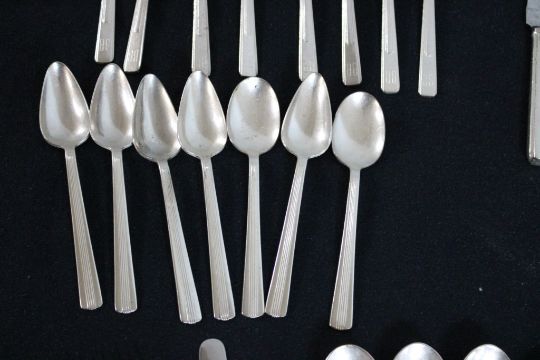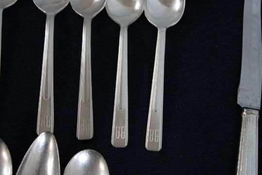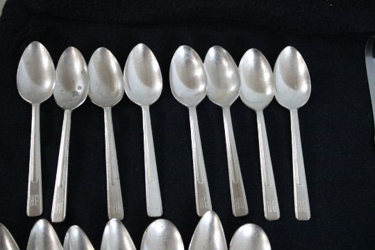 CZ & Burlington Route Dining Car Flatware - California Zephyr Century pattern & BR- Belmont & Modern patterns. Grouping of Knives, Forks and Spoons. Lot size 14"x12"x2" 8 lbs. Photos are part of description (Live Auctioneers only shows up to 20). Please ask questions and read terms & conditions before bidding.