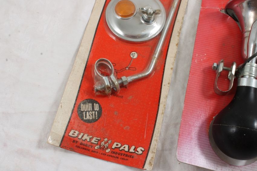Bell Bugle Bike Horn, Dorcy Industries Bike Mirror - Both New on Packages. 1 Lb. Lot Size 11" x 5" x 5". Photos are part of description (Live Auctioneers only shows up to 20). Please ask questions and read terms & conditions before bidding.
