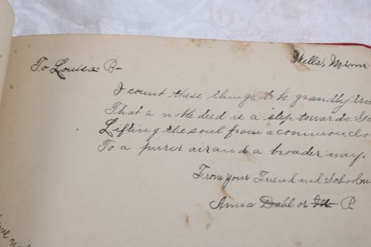 4 School Victorian 1890's Autograph Books - 2 Lbs. Lot Size 9" x 9" x 5". Photos are part of description (Live Auctioneers only shows up to 20). Please ask questions and read terms & conditions before bidding.