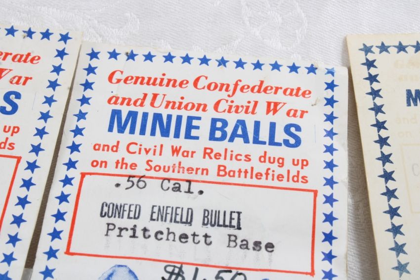 4 Confederate Civil War Relics - Minnie Balls - Carbine Spencer Cartridge. 5 Oz. Lot Size 6" x 4" x 2". Photos are part of description (Live Auctioneers only shows up to 20). Please ask questions and read terms & conditions before bidding.