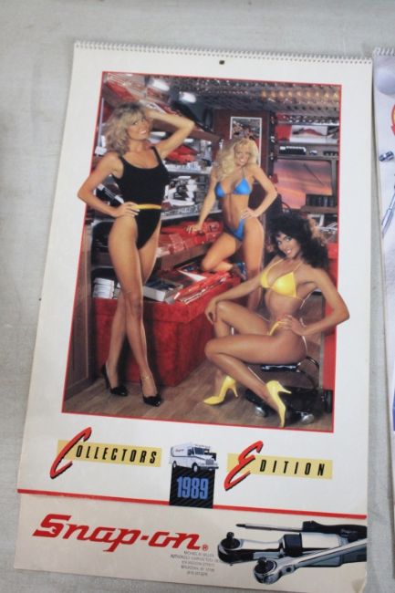 1989-1992 Snap On & 1959 Risque Calendars, - 1959 is a Hilda Risque Calendar and 4 Snap-On Tools Calendars. 2 Lbs. All are Complete. Lot Size 22" x 13.5" x 2". Photos are part of description (Live Auctioneers only shows up to 20). Please ask questions and read terms & conditions before bidding.