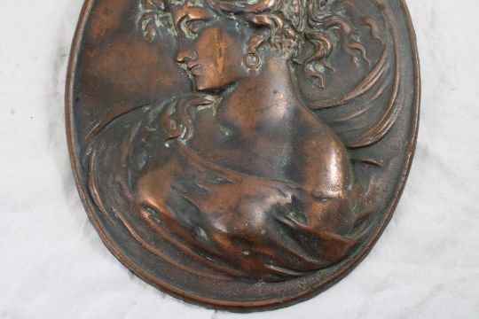 Victorian Art Nouveau Lady Bronze Wall Plaque - Antique Plaque. 6 Lbs. Lot Size 13" x 10" x 1". Photos are part of description (Live Auctioneers only shows up to 20). Please ask questions and read terms & conditions before bidding.
