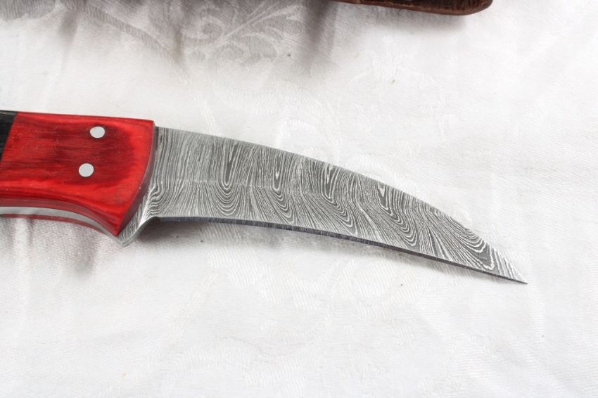 Custom Made Damascus Fixed Blade Knife w/Sheath - 8 Oz. Lot Size 8" x 3" x 2". Photos are part of description (Live Auctioneers only shows up to 20). Please ask questions and read terms & conditions before bidding.