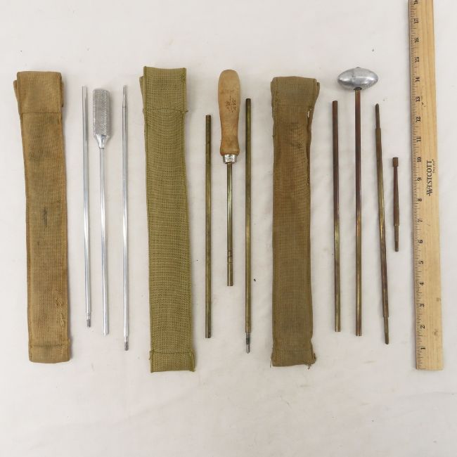 US Military barrel covers & gun cleaning rods - Lot Size 12x6x4" 5lb Photos are part of description. Live Auctioneers displays a max of 20 photos- all photos can be seen on Proxibid and bid.anewdayauctions.com. Please ask questions and read terms & conditions before bidding.