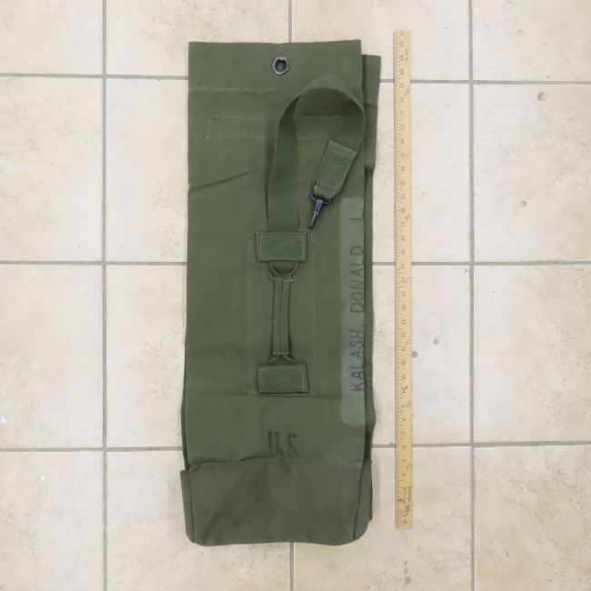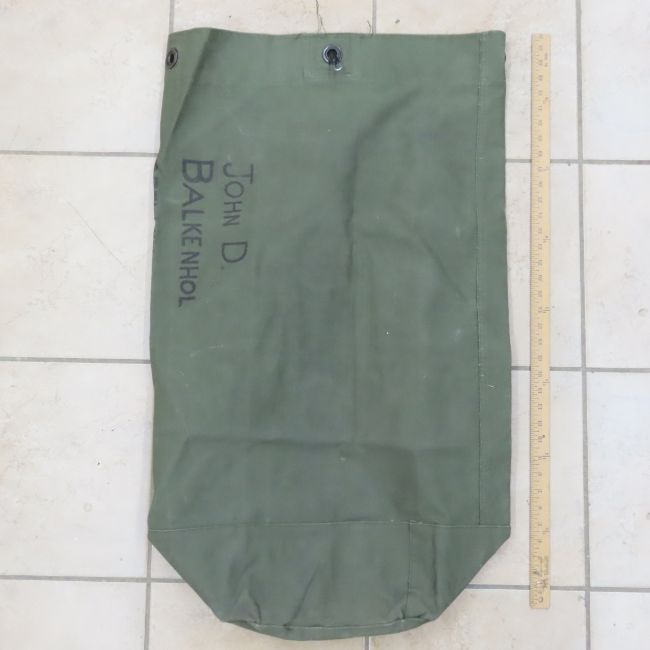 5 Vintage US Army Canvas Duffle Bags - One denim drawstring bag. Lot size: 17 x 13 x 13", 18 lbs Photos are part of description. Live Auctioneers displays a max of 20 photos- all photos can be seen on Proxibid and bid.anewdayauctions.com. Please ask questions and read terms & conditions before bidding.