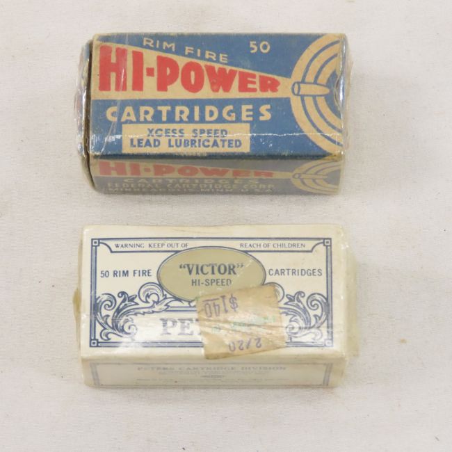 Ammunition: 400 Rds Mixed .22LR & 63 Rds 22 Short - 1) 50 rds Peters "Victor .22 LR, 2) 50 rds Winchesters Subsonic . 22LR, 3) 50 rds Hi-Power .22LR, 4) 50 rds Remington Hi-Speed Goden Bullet .22LR, 5) 50 rds, Remington 22 Subsonic .22LR, 6) 50 rds Winchester Wildcat.22LR, 7) 50 rds Winchester Western Wildcat .22LR, 8) 50 rd Western Super X .22LR, 9) 50 rds Hi-Power .22 short, 10) jar with 13 rds blank .22 short. Lot size: 5 x5 x5", 3.4 lbs Photos are part of description. Live Auctioneers displays a max of 20 photos- all photos can be seen on Proxibid and bid.anewdayauctions.com. Please ask questions and read terms & conditions before bidding.