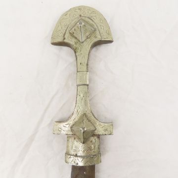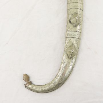 Moroccan Koummya Dagger With Scabbard - 8.5" blade. Lot size 17 x 6 x 1.5", 1 lb Photos are part of description. Live Auctioneers displays a max of 20 photos- all photos can be seen on Proxibid and bid.anewdayauctions.com. Please ask questions and read terms & conditions before bidding.
