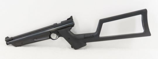 Crosman American Classic P1377 .177 Air Pistol - with 1399 synthetic stock, works- excellent condition, single shot,. pull down multi-pump, 10" barrel. Please know local laws before bidding. Lot size: 25 x 7 x 3", 2.9 lbs Photos are part of description. Live Auctioneers displays a max of 20 photos- all photos can be seen on Proxibid and bid.anewdayauctions.com. Please ask questions and read terms & conditions before bidding.