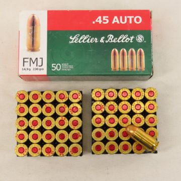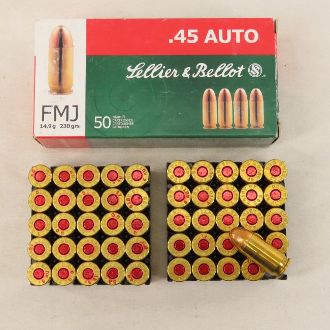 150 Rounds Sellier & Bellot 45 Auto ammunition - 3 50 round boxes, 230 grain FMJ Photos are part of description. Live Auctioneers displays a max of 20 photos- all photos can be seen on Proxibid and bid.anewdayauctions.com. Please ask questions and read terms & conditions before bidding.