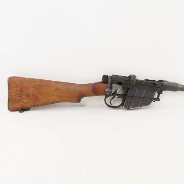 1943 Enfield Mark III* Training Cutaway .303 Rifle - SN# B 99610, 16 3/4" barrel, bolt action, 10 rd detachable magazine, wood stock with sling loop. stock stamped: " (illegible) III* HV 1943", trapdoor buttplate. Typical wear for age. C&R or FFL transfer required. Pleaseknow local laws before bidding. Lot size: 36 x 6 x 4", 6 lbs. Photos are part of description. Live Auctioneers displays a max of 20 photos- all photos can be seen on Proxibid and bid.anewdayauctions.com. Please ask questions and read terms & conditions before bidding.