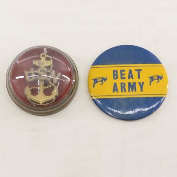 US Navy Shadowbox, Sports Pennant, Paperweight - Hat and more. Shadowbox measures 20x16x3.25", items can be shipped without box to save some in shipping. Lot size 20x16x4" 8lb Photos are part of description. Live Auctioneers displays a max of 20 photos- all photos can be seen on Proxibid and bid.anewdayauctions.com. Please ask questions and read terms & conditions before bidding.