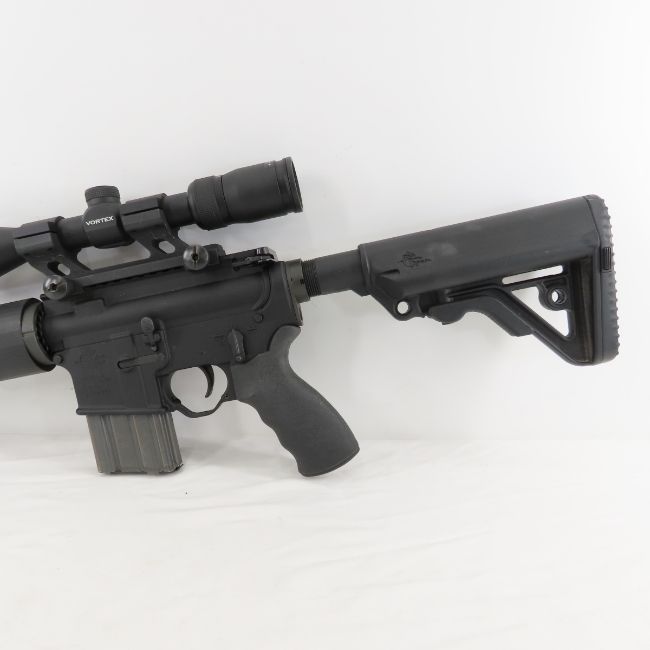 Rock River Operator LAR-15 Rifle 5.56mm & Scope - SN# CM204771, 5.56mm NATO chamber for 5.56 & .223, Forged A4 upper, 16" chrome moly 1:9 twist barrel, RRA tactical muzzle break, RRA 2 stage trigger with winter guard, ERGO sure grip pistol grip, RRA quad free floatmid-length handguard, RRA operator CAR stock- adjustable, 37" OAL, with 1 NHMTH S/42 30rd magazine and, 1 Brownell 20 rd magazine, RRA High Rise 1" scope mount, and Department of the Army manual. Mounted scope: VortexDiamondback 3-9X40 with covers. All in hard case. FFL transfer required (MN as a SAMSAW), please know local laws before bidding- not legal in all areas. Lot size: 34 x 14 x 7", 18 lbs Photos are part of description. Live Auctioneers displays a max of 20 photos- all photos can be seen on Proxibid and bid.anewdayauctions.com. Please ask questions and read terms & conditions before bidding.
