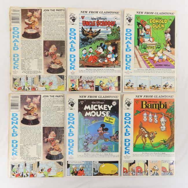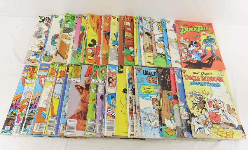36 Gladsone Walt Disney Comics, Duck Tales #1 - Plus other vintage cartoon comics, some in decent condition, some very rough. Lot Size 11x7x5" 6lb Photos are part of description. Max of 20 photos are shown in Live Auctioneers, all are shown on Proxibid and bid.anewdayauctions.com. Please ask questions and read terms & conditions before bidding.