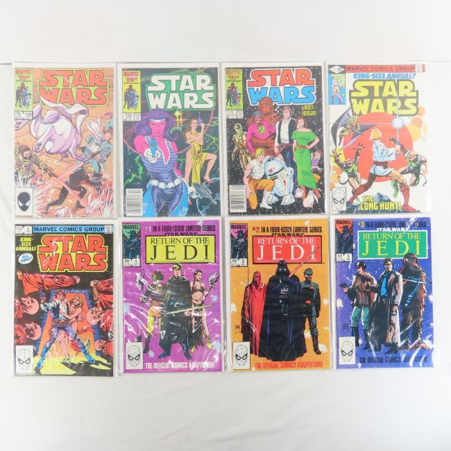 Star Wars Complete Comic Book Series & More - Star Wars 1-107, Annuals 1& 2, Special Edition 1&2, Empire Strikes Back Special Edition, Return of the Jedi 1-4, Ewoks 1-13, and Droids 1-7. all regular size are bagged & boarded, large size are bagged. All inCarry case. lot size 16x8x12", 23 lbs Photos are part of description. Max of 20 photos are shown in Live Auctioneers, all are shown on Proxibid and bid.anewdayauctions.com. Please ask questions and read terms & conditions before bidding.