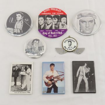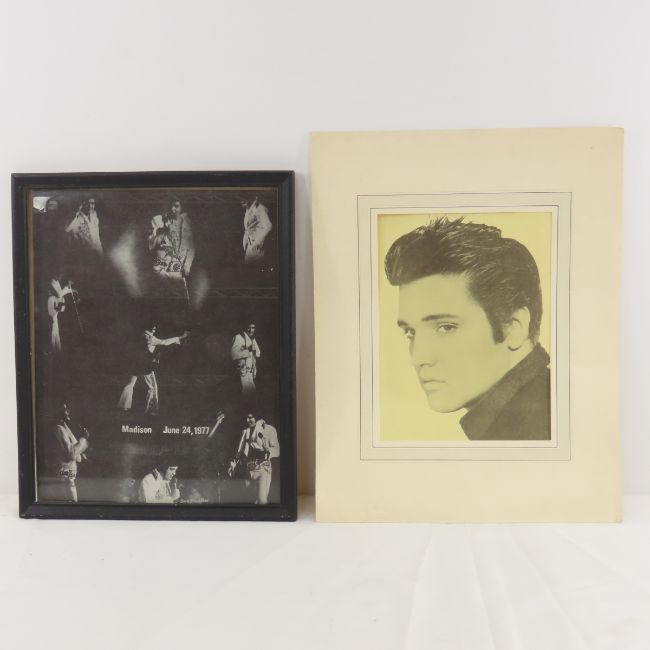 Elvis Calendar, Buttons, Pocket Mirrors & More - key chain knife, postcards, framed magazine pictures, "The Illustrated Elvis", and more. lot sie: 13x12x7", 6.9 lbs Photos are part of description. (Live Auctioneers only shows a max of 20 photos). Please ask questions and read terms & conditions before bidding.