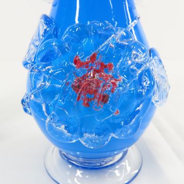 Pair of Antique Blue Glass Tivoli Vases 8.25" - LOT SIZE 10X10X6" 5 LB Photos are part of description. (Live Auctioneers only shows a max of 20 photos). Please ask questions and read terms & conditions before bidding.