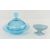 Blue Miss America Pattern Glass Butter Dish & Salt - Butter dish is 6" across. LOT SIZE 8X6X6" 4 LB Photos are part of description. (Live Auctioneers only shows a max of 20 photos). Please ask questions and read terms & conditions before bidding.