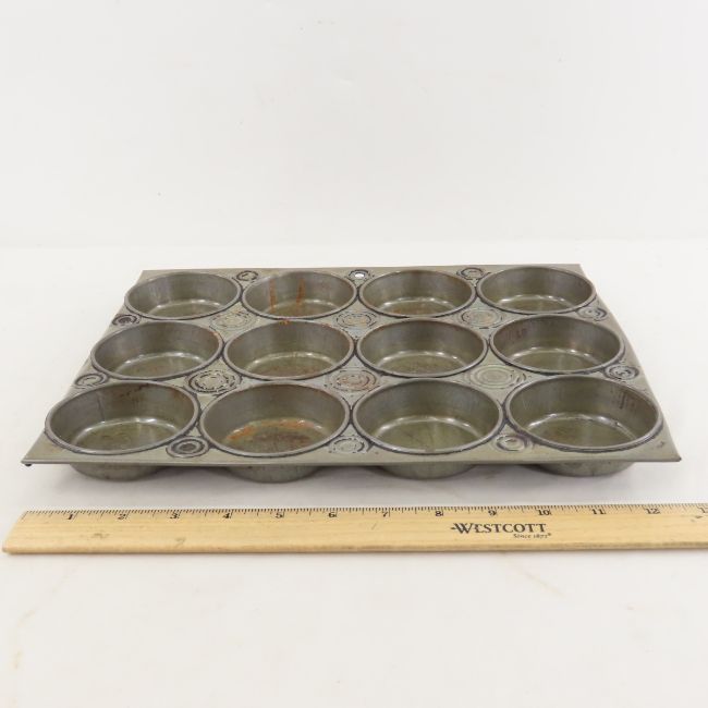 Lodge 17 Cast Iron Pan, Muffin Pan & More - metal card file/bank box with key 14.5x5x4", and metal tray 14x7x4".. Lot size: 15x12x8", 9.5 lbs Photos are part of description. (Live Auctioneers only shows a max of 20 photos). Please ask questions and read terms & conditions before bidding.