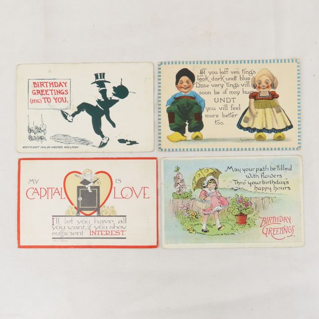 Postcards, Antique Paris Booklets, Halloween Card - Lot Size 6x4x2" 2lb Photos are part of description. (Live Auctioneers only shows a max of 20 photos). Please ask questions and read terms & conditions before bidding.