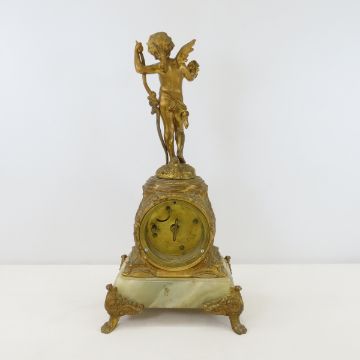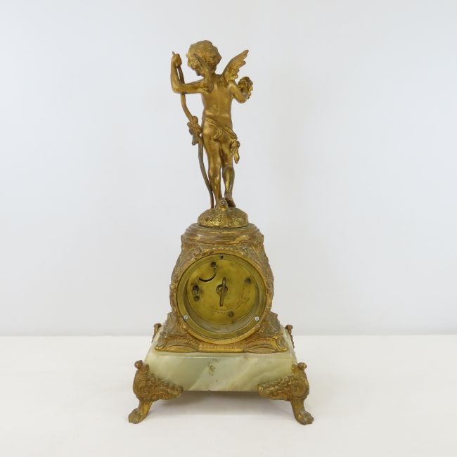 The Jennings Brothers Cupid/Cherub Clock - 14.5" tall, springs don't wind, mechanism will need repair. LOT SIZE 16X8X8" 8 LB Photos are part of description. (Live Auctioneers only shows a max of 20 photos). Please ask questions and read terms & conditions before bidding.