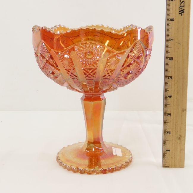 Marigold Carnival Glass & Slag Glass Honey Pot - Northwood Fruits & Flowers bowl, Imperial Glass Dewey Butter Dish with lid, Imperial Glass Compote. LOT SIZE 14X14X14" 10 LB Photos are part of description. (Live Auctioneers only shows a max of 20 photos). Please ask questions and read terms & conditions before bidding.