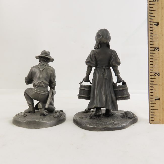 10 Franklin Mint "American People" Pewter Figures - The First Citizen, The Gibson Girl, The Immigrant, The Pathfinder, The G.I., The Astronaut, The Canal Boat Man, The Homesteader, The Prospector, The Jazz Man. Lot Size: 19 x 16 x 7", 12 lbs Photos are part of description. (Live Auctioneers only shows a max of 20 photos). Please ask questions and read terms & conditions before bidding.
