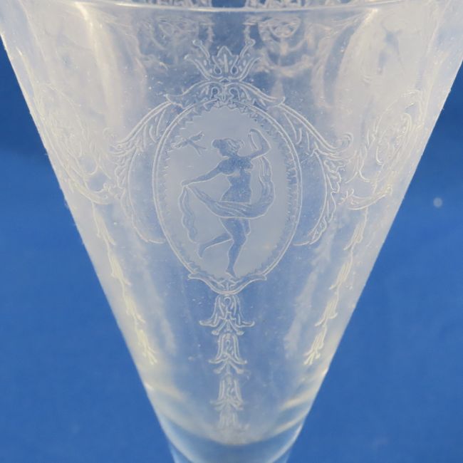 Tiffin Franciscan Classic Clear Glassware - 9 6" champagne, 6 7.25" glasses. Lot size: 20x16x8", 6.5 lbs Photos are part of description. (Live Auctioneers only shows a max of 20 photos). Please ask questions and read terms & conditions before bidding.