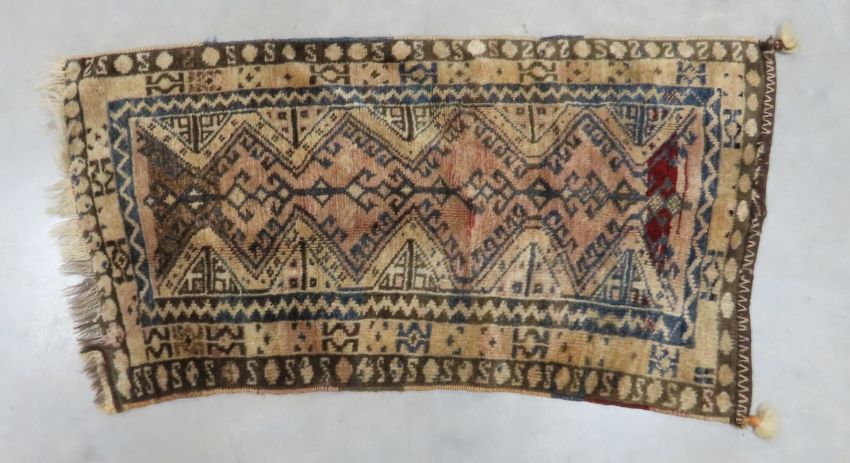 7 Vintage Hand Knotted Oriental Rugs - all have rough edges, brown & rose 35 x20", tan (crooked ) 35x18", red 38x17", square blue 22x21", small burgundy 24x15", red & blue 34x17 (rough shape), largest 43x33". Lot size: 18x12x8", 11 lbs Photos are part of description. (Live Auctioneers only shows a max of 20 photos). Please ask questions and read terms & conditions before bidding.