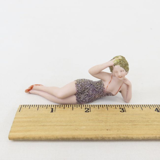 Art Deco German Bathing Beauty Figurine #5684 - measures 3.5x1.5x1" LOT SIZE 6X3X3" 4 LB Photos are part of description. (Live Auctioneers only shows a max of 20 photos). Please ask questions and read terms & conditions before bidding.