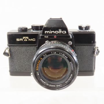 Minolta SRTMC 35mm Black Camera w/ 50m f/1.4Lens - Untested, winds, good condition. Lot size: 7x7x5", 2.5 lbs Photos are part of description. (Live Auctioneers only shows a max of 20 photos). Please ask questions and read terms & conditions before bidding.