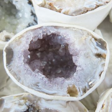 4 lb Collection of Small Cut Geodes - Lot Size: 12 x 9 x 2", 4 lbs Photos are part of description. (Live Auctioneers only shows a max of 20 photos). Please ask questions and read terms & conditions before bidding.