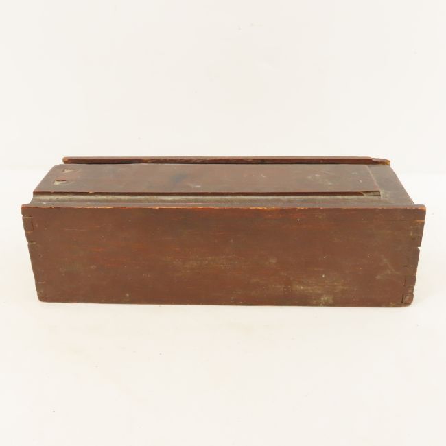 Early 1800's Antique Walnut Dovetailed Candle Box - Piece of Lid is broken off and Missing. 11.5" long. Lot Size: 12 x 5 x 4", 1 lb Photos are part of description. (Live Auctioneers only shows a max of 20 photos). Please ask questions and read terms & conditions before bidding.