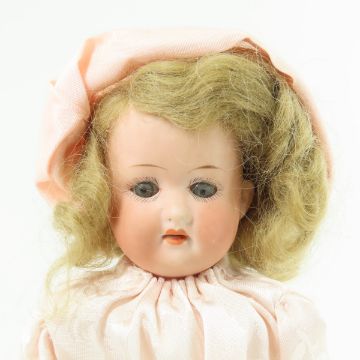 2 Antique Heubach Koppelsdorf Bisque Head Dolls - 1) 12" doll with Bisque shoulder head marked : Germany 275 15/0 with sleep eyes, painted lashes, open mouth with teeth, hair wig. kid leather body, bisque hands, compo lower legs, vintage handmade dress. 2) 11" doll withBisque shoulder head marked :Germany 275 18/0 Heubach Koppelsdorf , has sleep eyes, painted lashes, open mouth with teeth, hair wig. Repaired kid leather body, ceramic hands and cloth legs, vintage handmade clothing.Both with stands. All have been displayed- may not be complete or all original. Lot size: 12x9x6", 1.5lbs Photos are part of description. (Live Auctioneers only shows a max of 20 photos). Please ask questions and read terms & conditions before bidding.